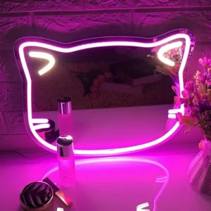 El espejo con luz de ne贸n rosa聽 y forma de gato es el punto destacado ideal para la decoraci贸n de cualquier punto de la casa.